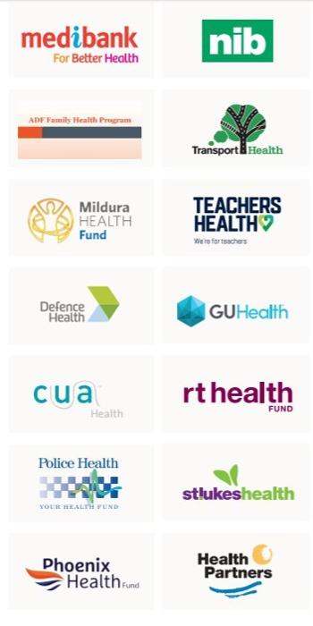 Health funds accepted include: ACA Health, AHM, Australian Unity, Bupa, CBHS, CUA Health Limited, Doctors Health Fund, Frank, GMHBA, Grand United, HBA, HBF, HVF, Health Care Insurance, Health Partners, HIF, Latrobe Health, Medibank, Members Own, Mildura Health Fund, myOwn, NIB, Peoplecare, Phoenix Health Fund, Police Health, Qantas Health Insurance, RACQ, Teachers Health Fund, Transport Health.